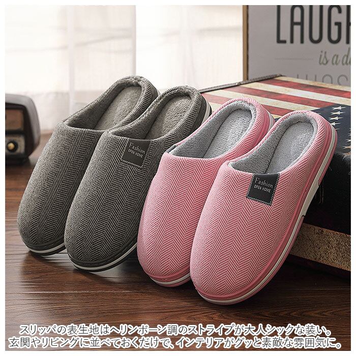 ・スリッパの表生地はヘリンボーン調のストライプが大人シックな装い。玄関やリビングに並べておくだけで、インテリアがグッと素敵な雰囲気に。