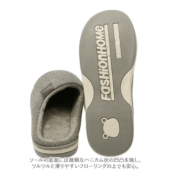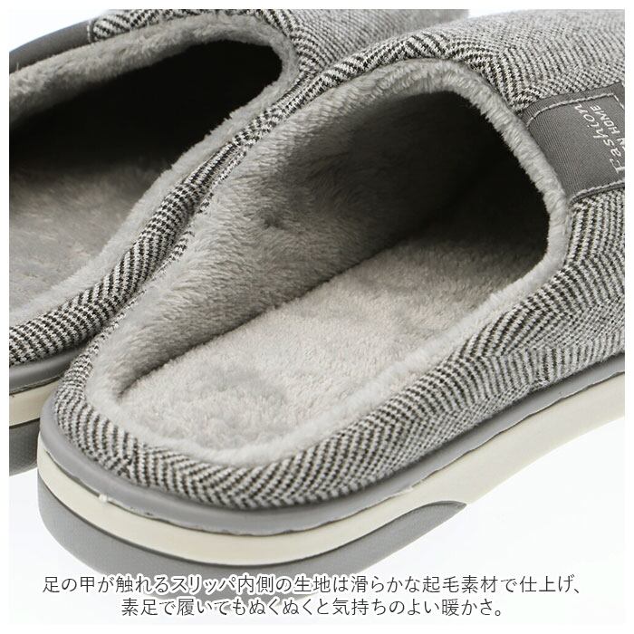 ・足の甲が触れるスリッパ内側の生地は滑らかな起毛素材で仕上げ、素足で履いてもぬくぬくと気持ちのよい暖かさ。