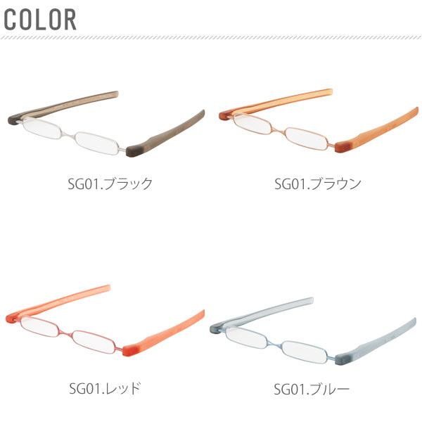 テンプルが360度自由に回転するコンパクトなポッドリーダー(携帯用シニアグラス)です。形状記憶樹脂を使用しているので、衝撃にも強い!しっかりと顔にフィットするので、長時間の使用もOKです。自宅・オフィス・お出かけに等雰囲気に合わせて選べる6色のカラーバリエーション♪オシャレなデザインで男女問わずお使いいただけます。収納ソフトケース付き。