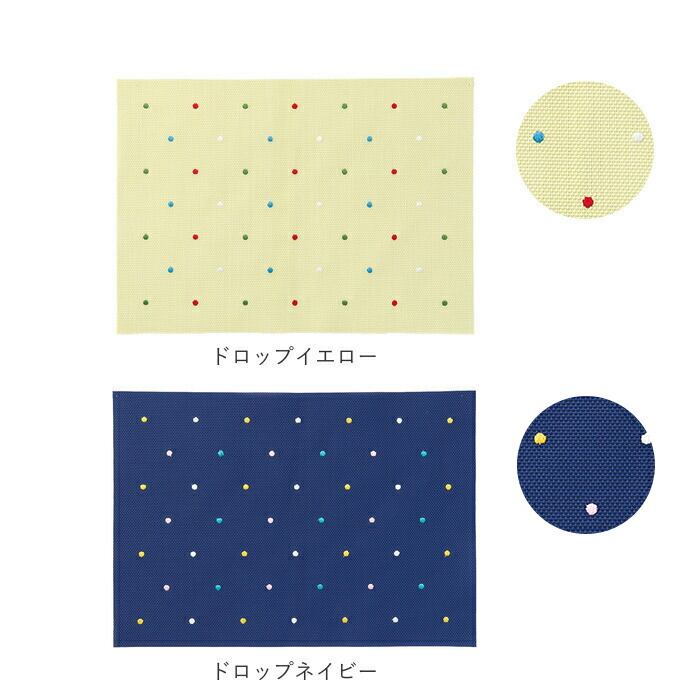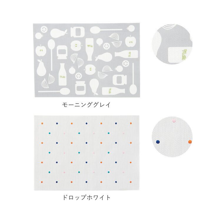 ・サッと水洗いできて洗濯いらずのランチョンマット。そのままシンクで洗ったり手軽に拭ける、PVC素材を使用。
