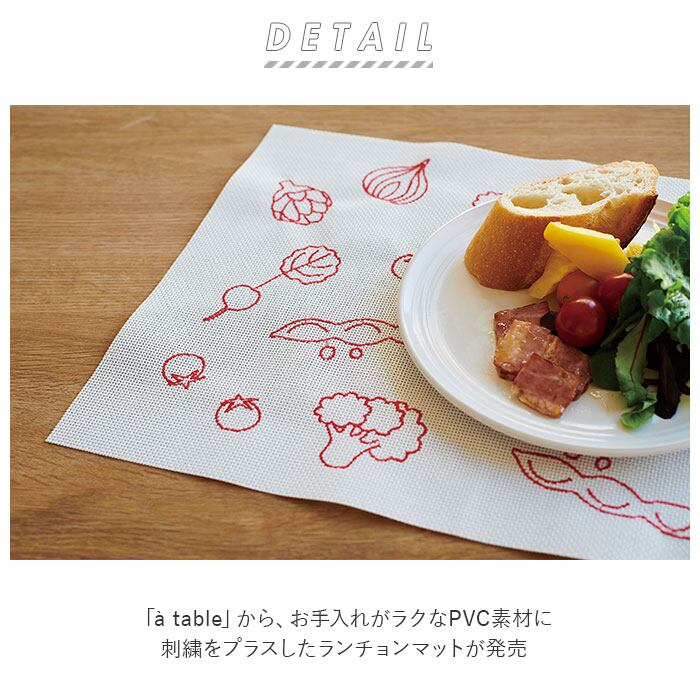 ・「a table」から、お手入れがラクなPVC素材に刺繍をプラスしたランチョンマットが発売。