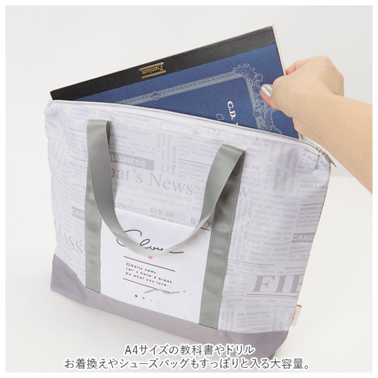 ・慌ただしい毎日の登下校時も安心!開口部は小物がこぼれ落ちる心配のない天ファスナータイプ。