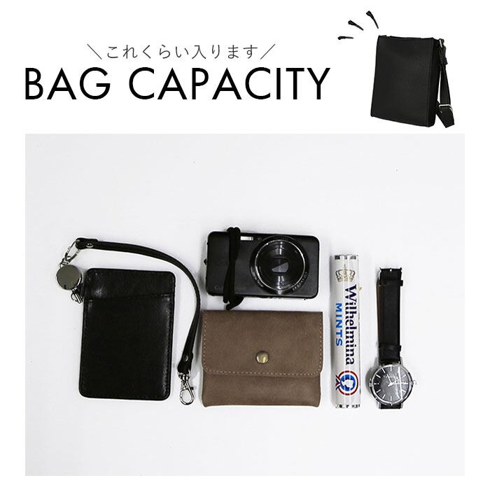 ・スマホやミニウォレットなど必要最小限の小物が収納できるサイズ感。コンビニやスーパーでのちょっとしたお買い物や、サブバッグとしてのご使用がおすすめ♪