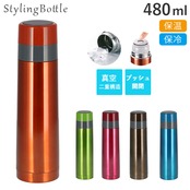 【廃盤】ステンレスボトル おしゃれ 通販 約 500ml 480ml 水筒 保冷 保温 マイボトル ワンプッシュ開閉式 洗いやすい 広口タイプ カップ 蓋付き コップ 男女兼用 シンプル 通学 通勤