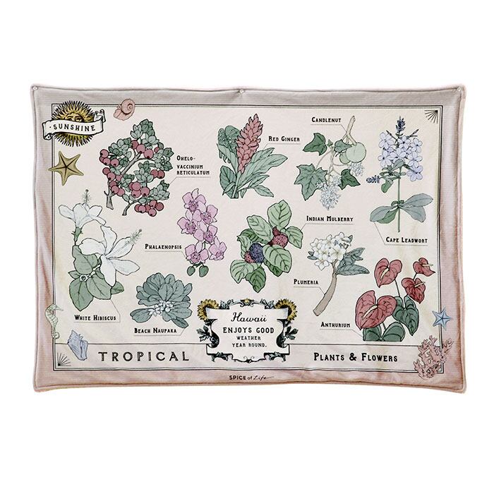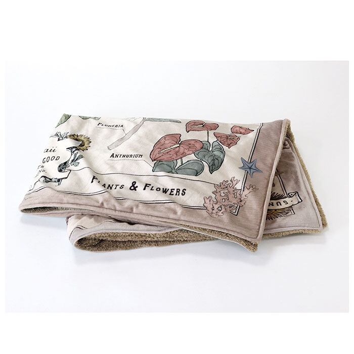 ・フラワーやキッチンツールなどが描かれた、シックで上質感のあるデザイン。使わない時はソファにかけておくだけで、おしゃれなインテリアに♪