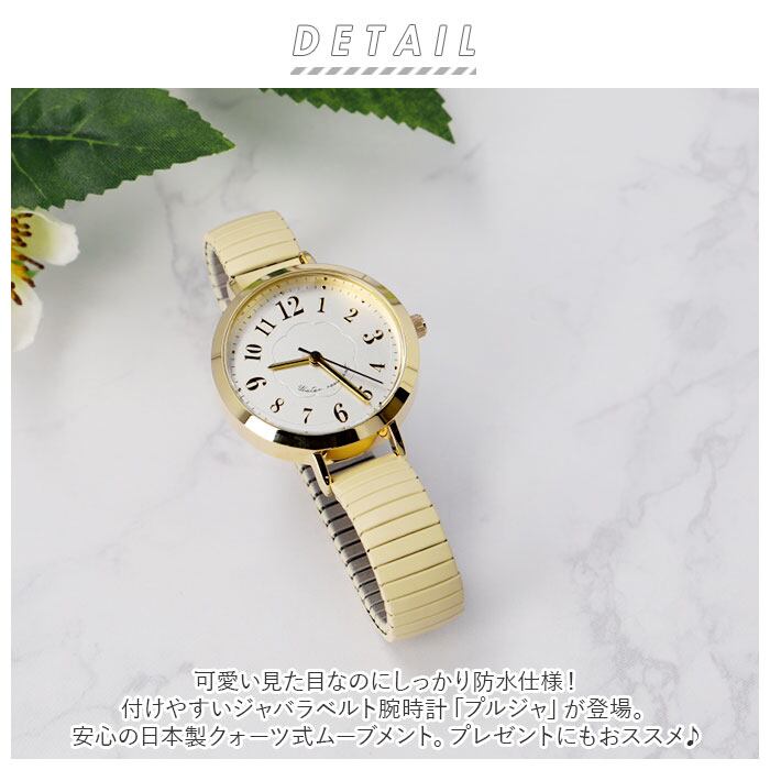 ・可愛い見た目なのにしっかり防水仕様!付けやすいジャバラベルト腕時計「プルジャ」が登場。