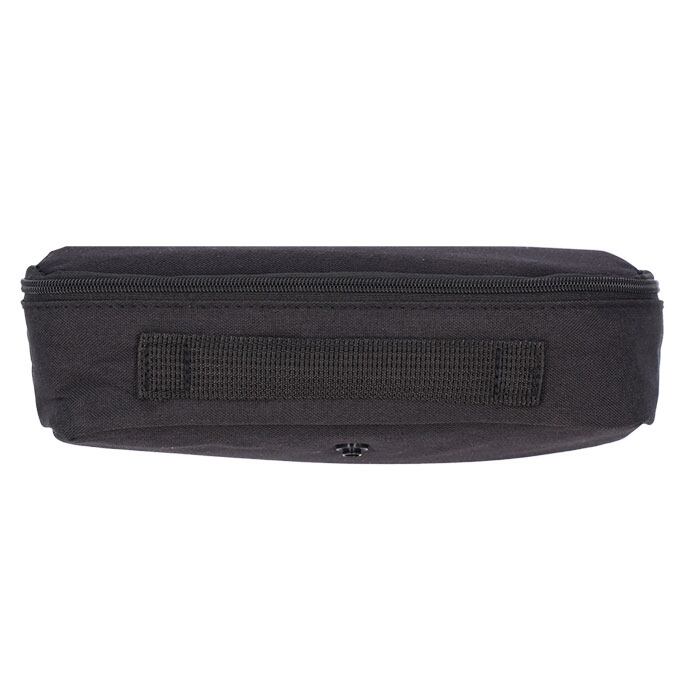 ・ファスナーを閉じて、持ち手ハンドルに手を通せば、ポーチと一緒に移動が楽ちん。カフェでのノマドワークや、リモートワークの必需品。