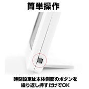 2.時間の設定方法:製品の右側面下に小さなボタンがあります。ボタンを1度押すと時針が点滅し、設定していただけます。長押しで早送りできます。時針設定完了後そのまま5秒待つことで分針が点滅して、時針と同様に設定することができます。分針設定完了後5秒待つことで通常モードに戻ります。