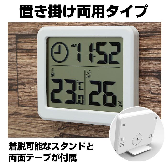 温度計 湿度計 付き時計 通販 卓上 スタンド 壁掛け デジタル おしゃれ シンプル 見やすい 温湿度計 デジタル時計 置時計 置き時計 卓上時計 掛け時計 温度湿度計 リビング 寝室 オフィス 室内温度計