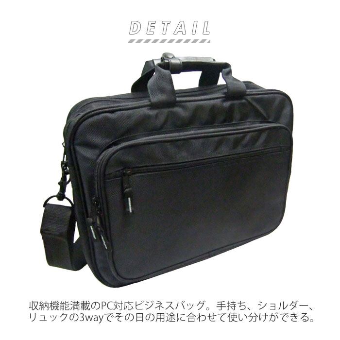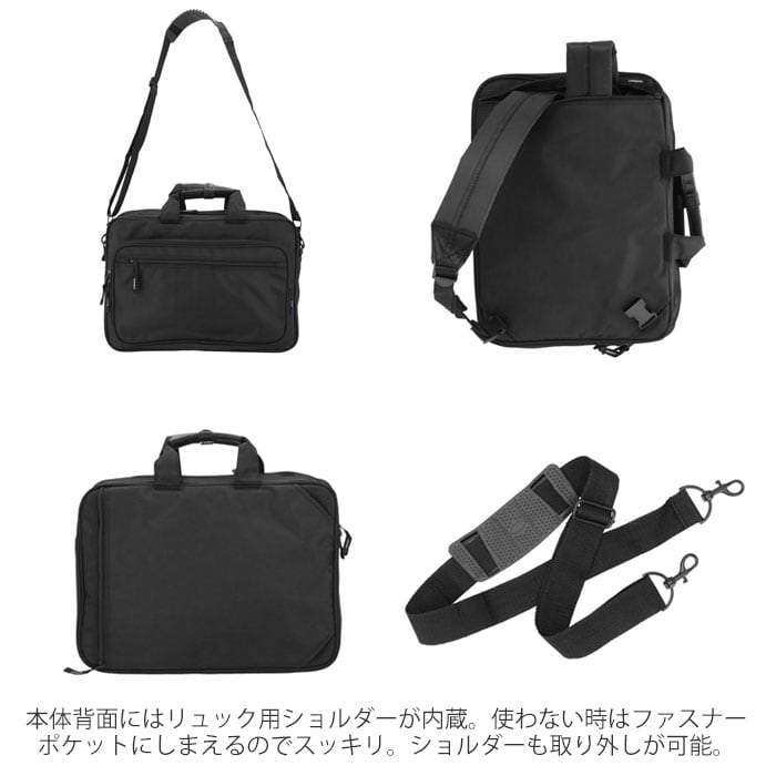 ・収納機能満載のPC対応ビジネスバッグ。手持ち、ショルダー、リュックの3wayでその日の用途に合わせて使い分けができる。