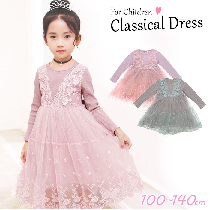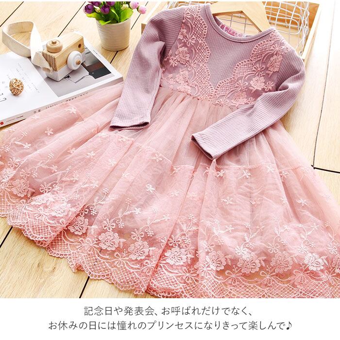 子供服 ワンピース 長袖 通販 ドレス 子供 女の子 ピアノ 発表会 入園式 卒園式 入学式 セレモニードレス おしゃれ かわいい シンプル 可愛い 七五三 誕生日 パーティ フリル レース Aライン ワンピ