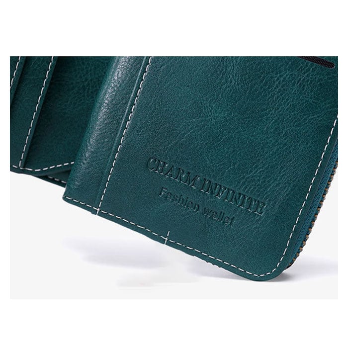 ・コの字ファスナーで大きく開くメイン収納部には、札入れ×2。ファスナーで開閉できる小銭入れ×1。