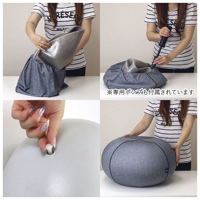 ※バランスボールはPVC素材の性質上、空気を入れる際に硬くて、規定のサイズまで膨らまない場合がございます。しばらく置いてなじませた後、何度も空気を入れて頂くと伸縮性が出て規定のサイズまで膨らますことが出来ます。お好みのサイズ、硬さにてご使用下さい。