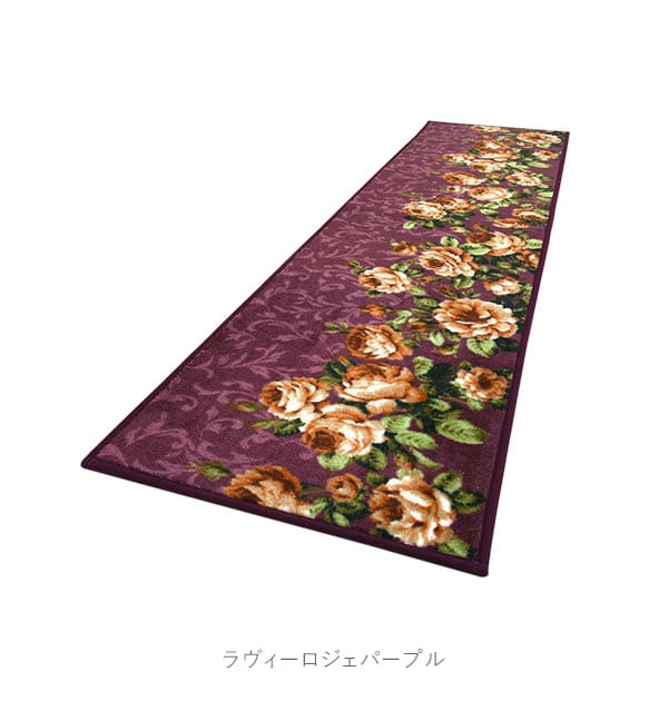 キッチンに華やかな色どりを加える、ラヴィーロジェ/エメローズ キッチンマットです。キッチンだけでなく玄関や通路、リビングなどにも使える明るいデザイン。お洗濯できますので清潔に使うことが出来ます。裏面はマットが滑りにくい加工済み。