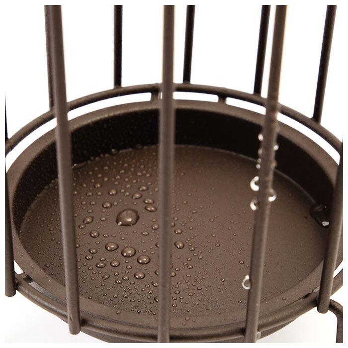 ・錆びにくいアイアン製のアンブレラスタンド。本体に固定された受け皿が付いているから安定感もあり、水も下に落ちない作りに。