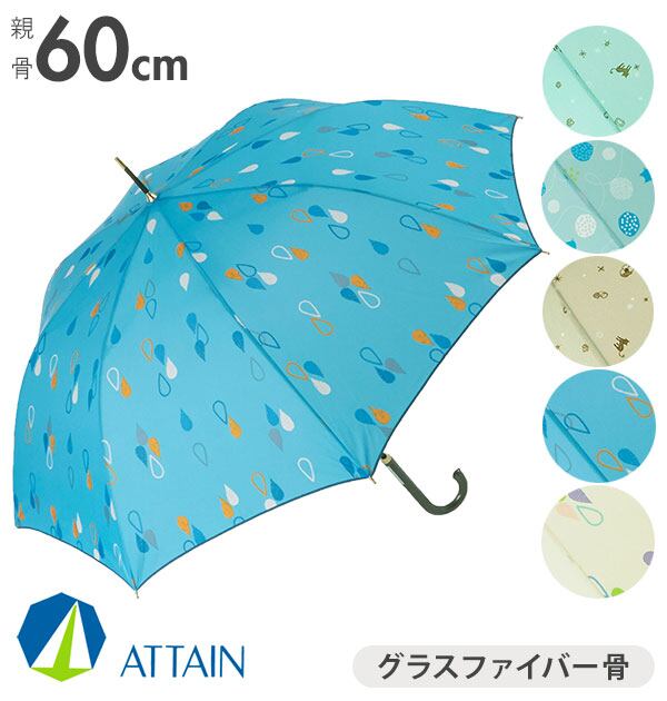 ジャンプ傘 60cm 8本骨 ATTAIN アテイン 通販 長傘 ジャンプ レディース 雨傘 ワンタッチ おしゃれ かわいい グラスファイバー骨 丈夫 折れにくい 女性 女の子 通勤 通学 軽量 軽い 中学生 高校生 婦人傘 大判 大きめ ネコ ねこ キャット しずく ドロップ ブルー サックス