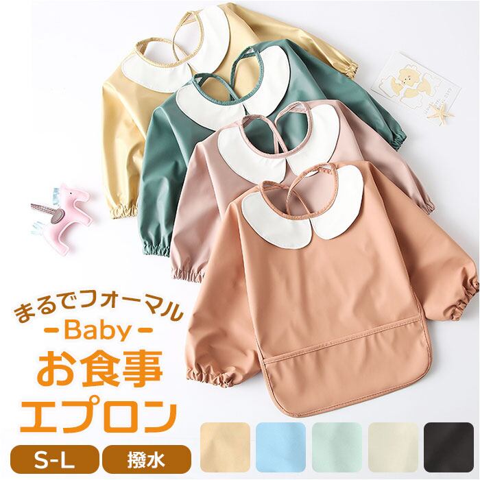 ベビー お食事エプロン 襟付き 撥水 長袖 babybib484