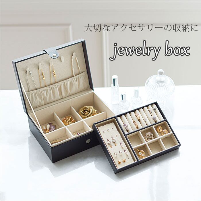 ジュエリーボックス 大容量 通販 ジュエリー アクセサリー ケース 保管 収納 宝石箱 小物入れ 2段 取り出しやすい ピアス収納シート 高級感 レザー調 起毛生地 シンプル かわいい