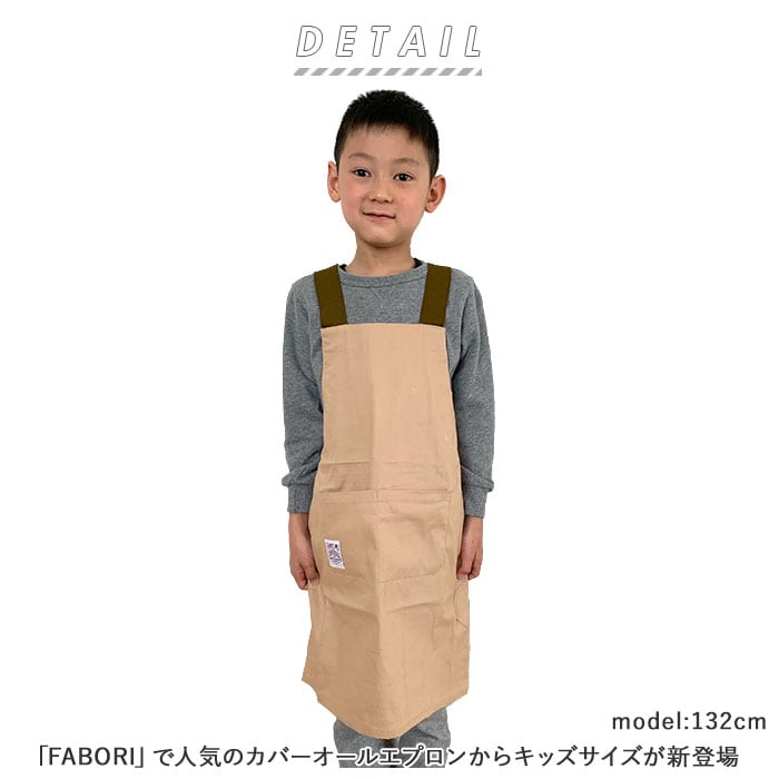 「FABORI」で人気のカバーオールエプロンからキッズサイズが新登場。