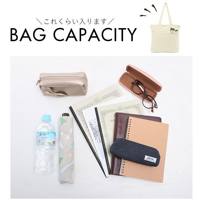 ・A4サイズのファイルもすっぽりと入るサイズ感。通学用のトートにもオススメ!内側には吊りポケット付き。