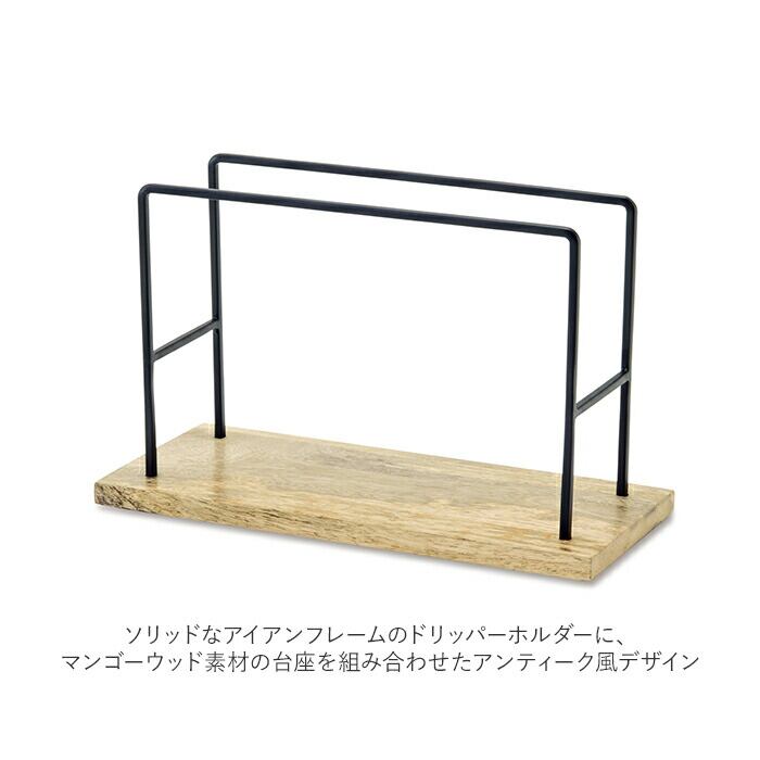 ・ソリッドなアイアンフレームのドリッパーホルダーに、マンゴーウッド素材の台座を組み合わせたアンティーク風デザイン。