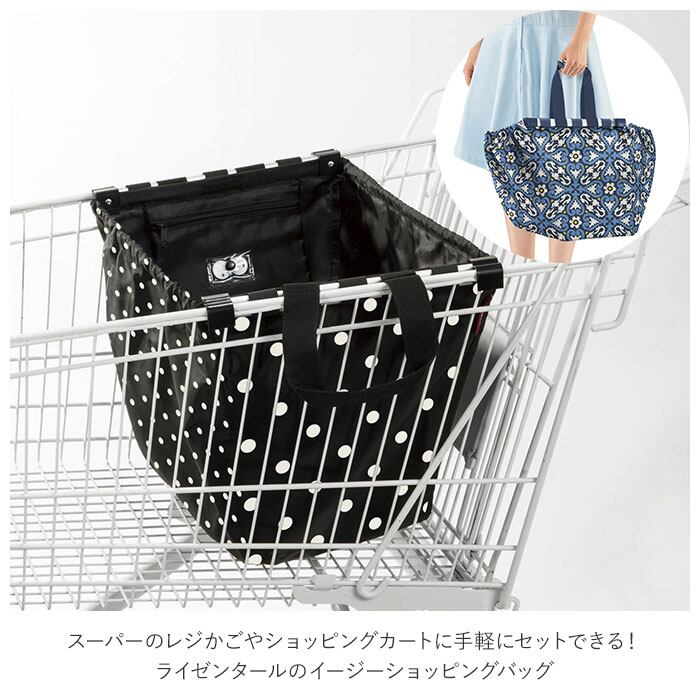 ・スーパーのレジかごやショッピングカートに手軽にセットできて、お買い物時の手間が時短できる!ライゼンタールのイージーショッピングバッグ。