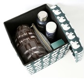 ・ナチュラルな素材感に、北欧風のテキスタイル柄が可愛らしい!「座ってしまえて畳める便利ボックス」が発売。