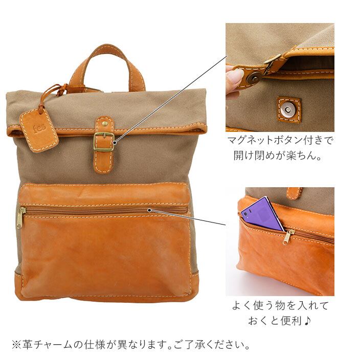 リュック レディース 革 通販 レザー 大容量 A4 ブランド fes フェス 通勤 通学 おしゃれ シンプル カジュアル ナチュラル 大人 かわいい 牛革 カウレザー 布 帆布 配色 切り替え 背面ファスナー キャンバス素材 コンビ被せ ギフト プレゼント