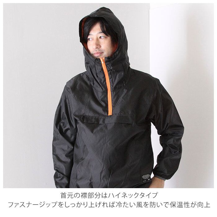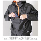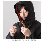 ・首元の襟部分はハイネックタイプ。ファスナージップをしっかり上げれば冷たい風を防いで保温性が向上。フードの幅は首元のドローコードで調節可能。