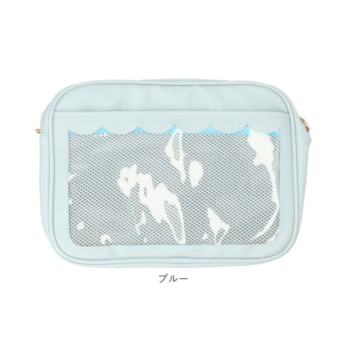 ・前面ファスナーポケットのクリアウィンドウが、この痛バッグのヒミツ。「推し」の缶バッジや写真を入れて、「推し色」にカスタマイズ可能。