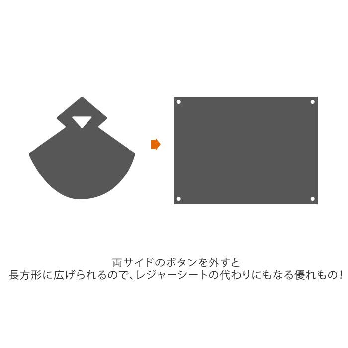 ・両サイドはスナップボタン仕様となっており、ボタンを留めると袖に、ボタンを外すと長方形に広げられるので、レジャーシートの代わりにもなる優れもの!