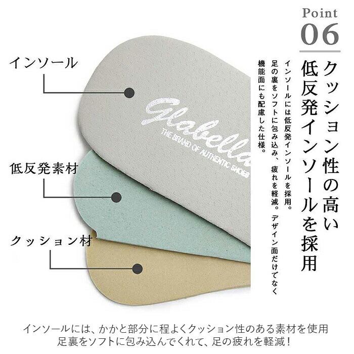 ・インソールには、かかと部分に程よくクッション性のある素材を使用。足裏をソフトに包み込んでくれて、足の疲れを軽減!