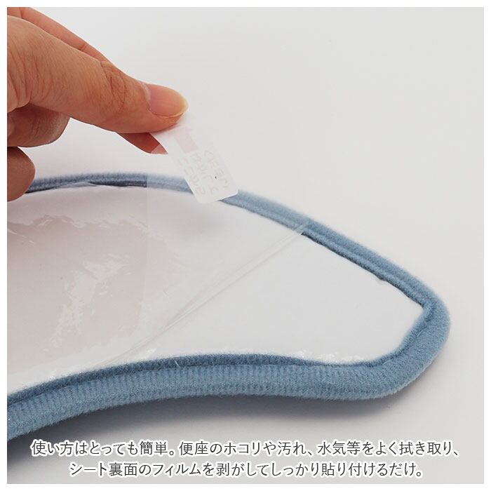 ・使い方はとっても簡単。便座のホコリや汚れ、水気等をよく拭き取り、シート裏面のフィルムを剥がしてしっかり貼り付けるだけ。