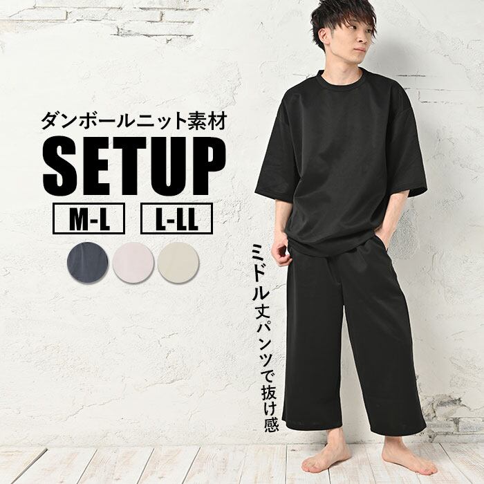 ルームウェア メンズ 上下 通販 半袖 7分袖 ゆったり 部屋着 セットアップ シンプル 無地 ミドルパンツ 春 秋 夏 春夏 ミドルパンツセットアップ HW8349 ルームウエア ルームウェア ナイトウエア