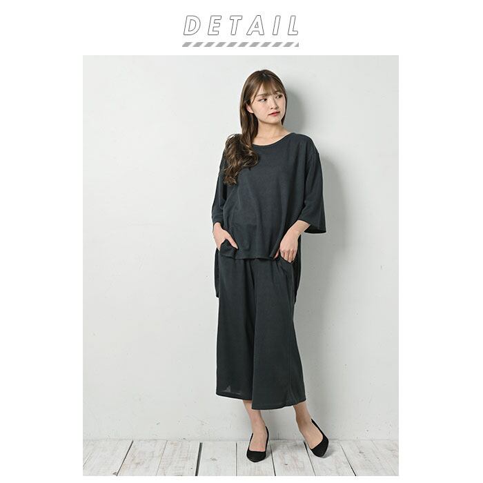 ・柔らかい肌触りと軽い着心地が気持ちいい♪5分袖トップスとガウチョパンツのセットアップが新登場!