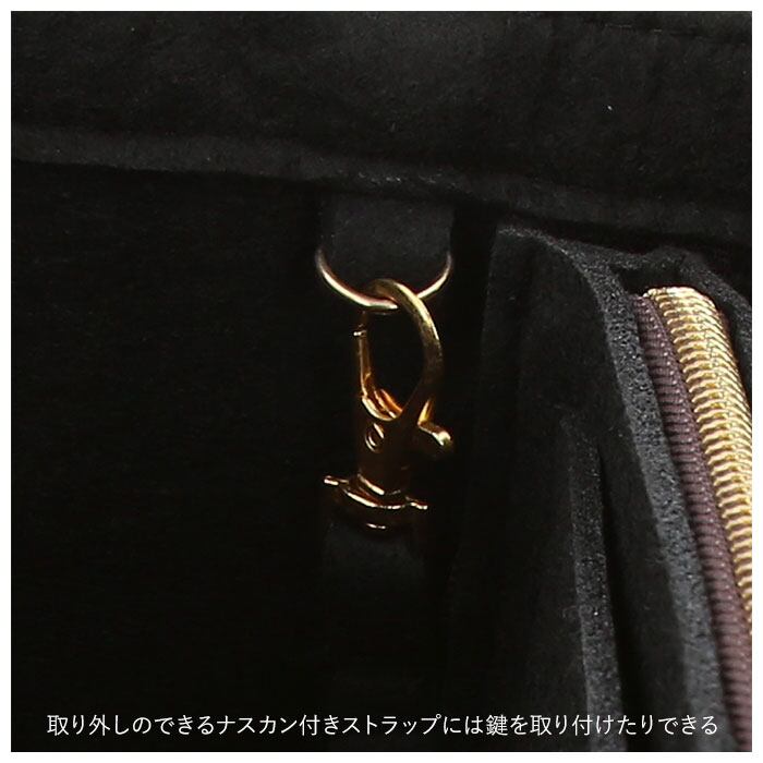・取り外しのできるナスカン付きストラップには鍵を取り付けたりできる。