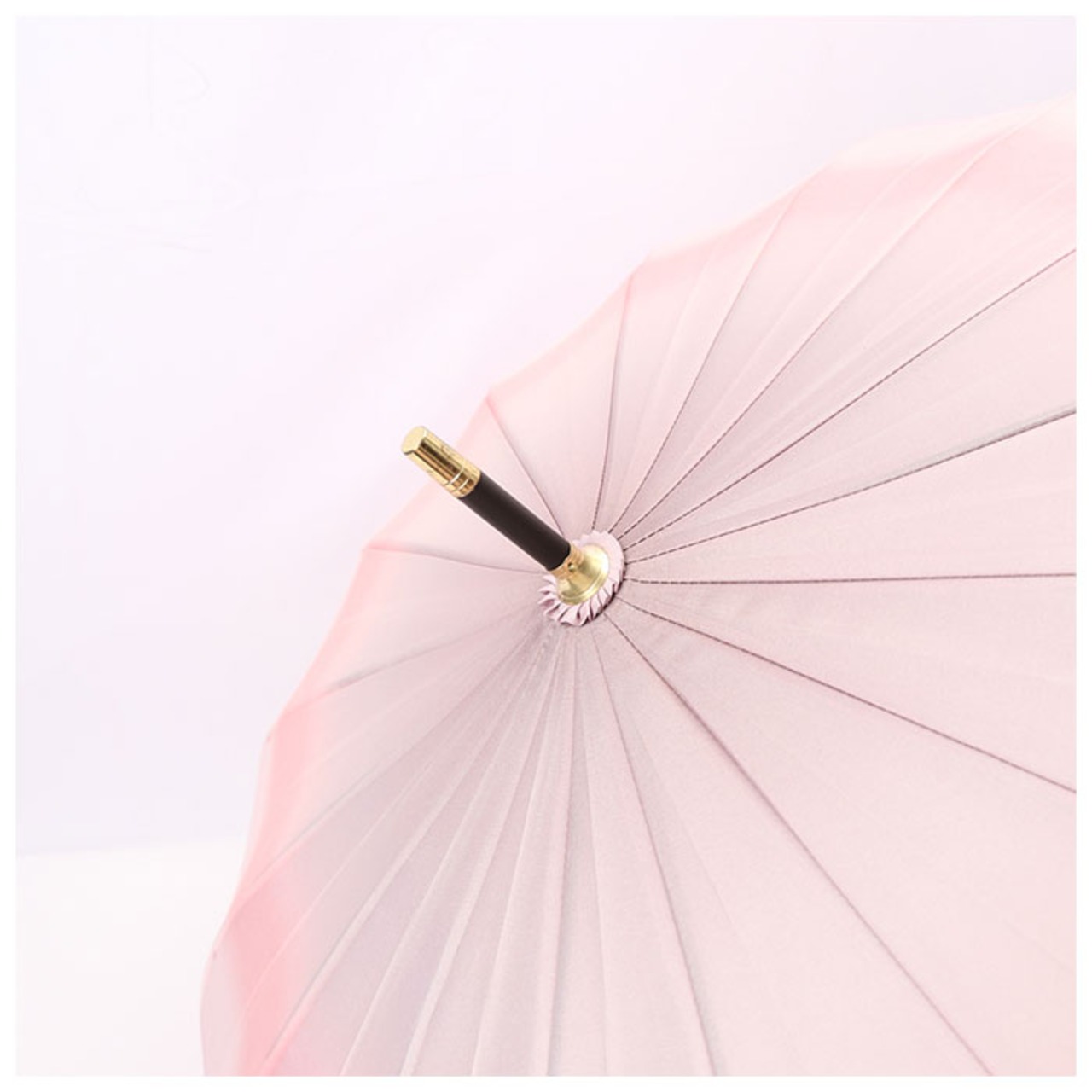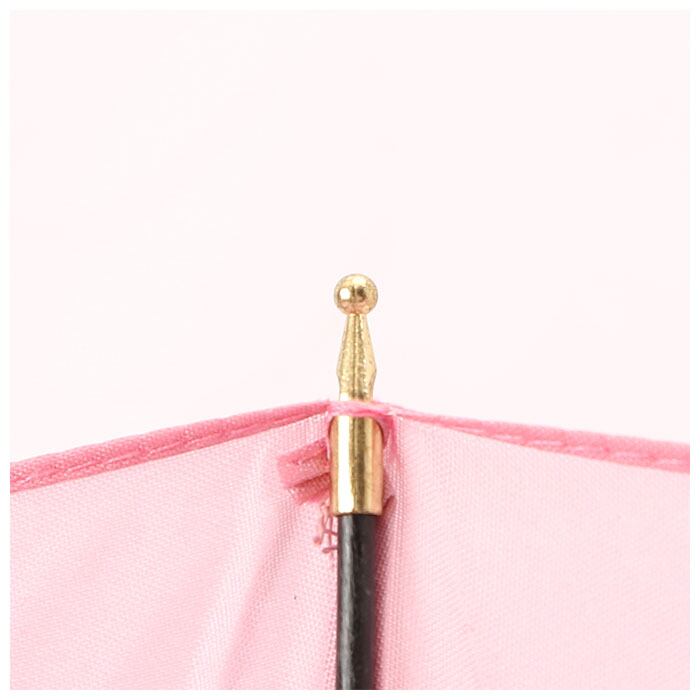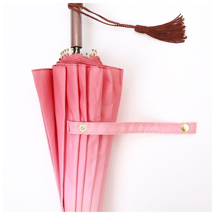 ・傘生地をまとめるバンドのカシメボタンやつゆ先にはゴールドのパーツを使用し、女性らしさがキラリと光るデザイン!