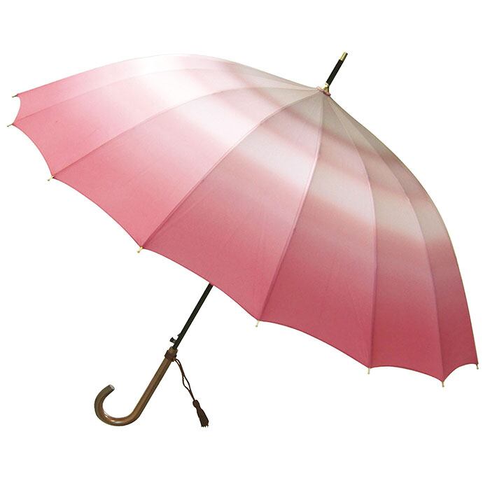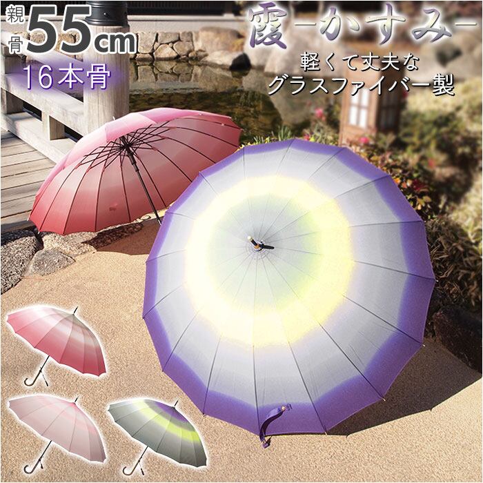 傘 レディース 16本 通販 ジャンプ 約 55cm おしゃれ グラデーション 霞 長傘 雨傘 かわいい ワンタッチ グラスファイバー 丈夫 アンブレラ パラソル 雨の日 雨具 santos サントス レイングッズ かさ カサ