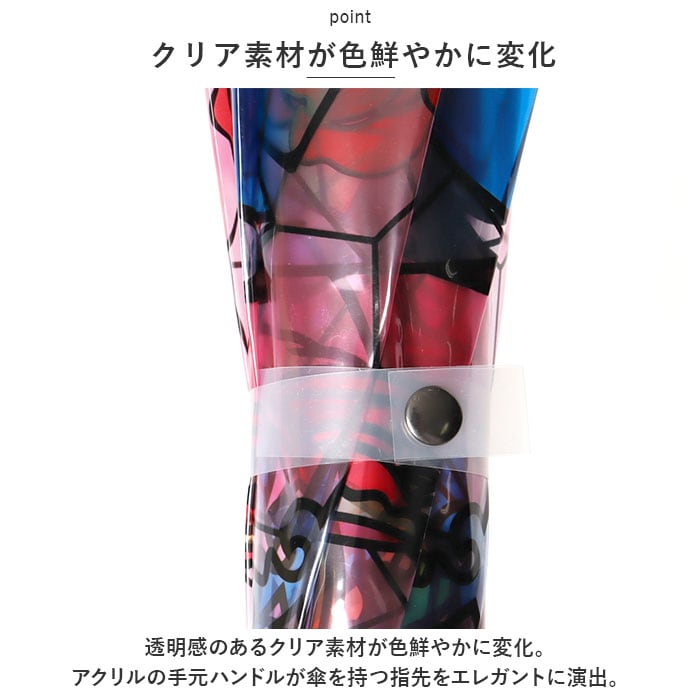 ・透明感のあるクリア素材が色鮮やかに変化。アクリルの手元ハンドルが傘を持つ指先をエレガントに演出。