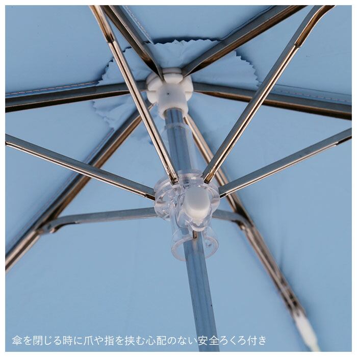 ・傘を閉じる時に爪や指を挟む心配のない安全ろくろ付きでお子様でも安心して使える。