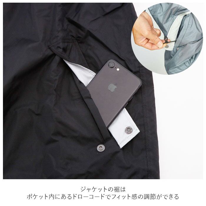 ・ジャケットの裾はポケット内にあるドローコードでフィット感の調節ができる。