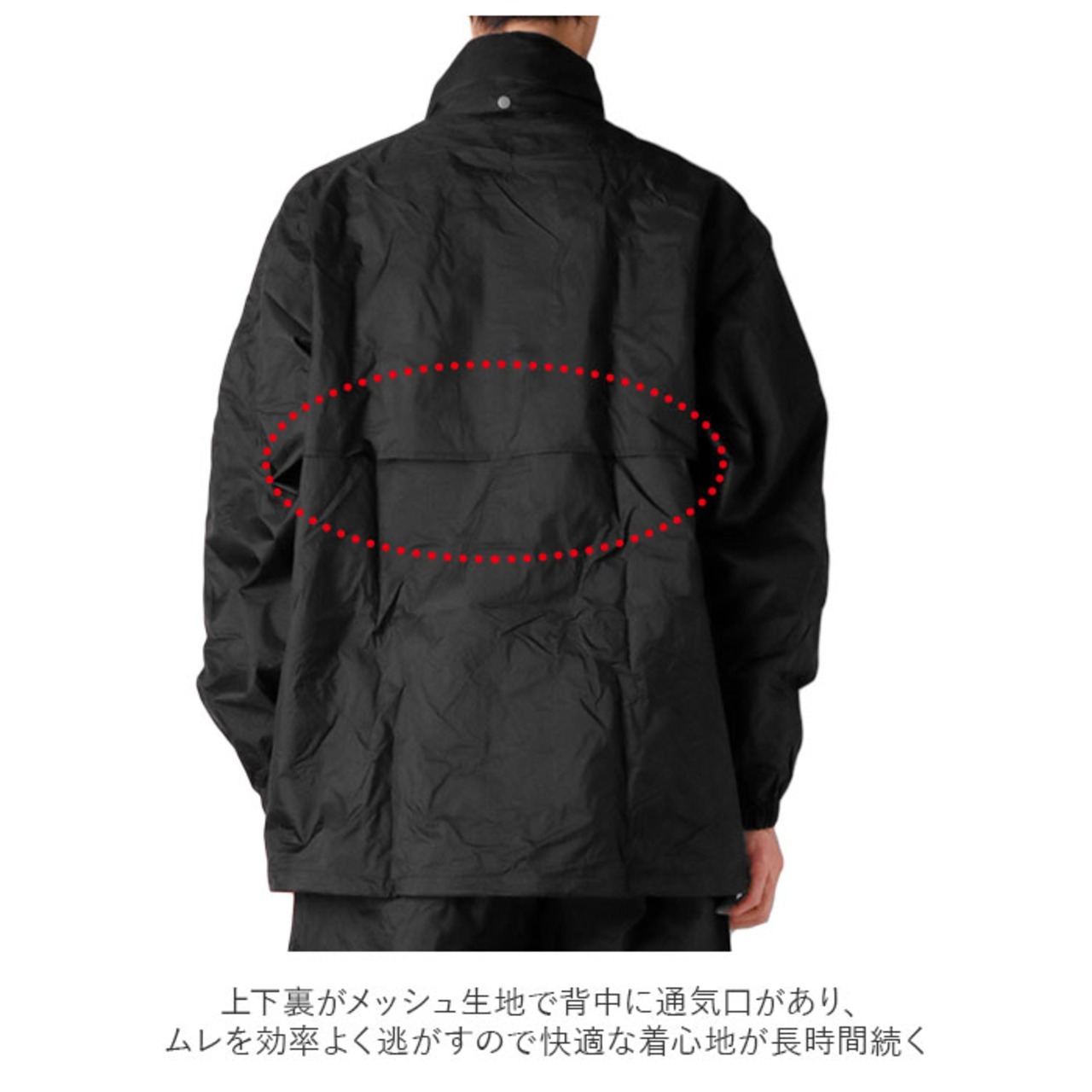 ・上下裏がメッシュ生地で背中に通気口があり、ムレを効率よく逃がすので快適な着心地が長時間続く