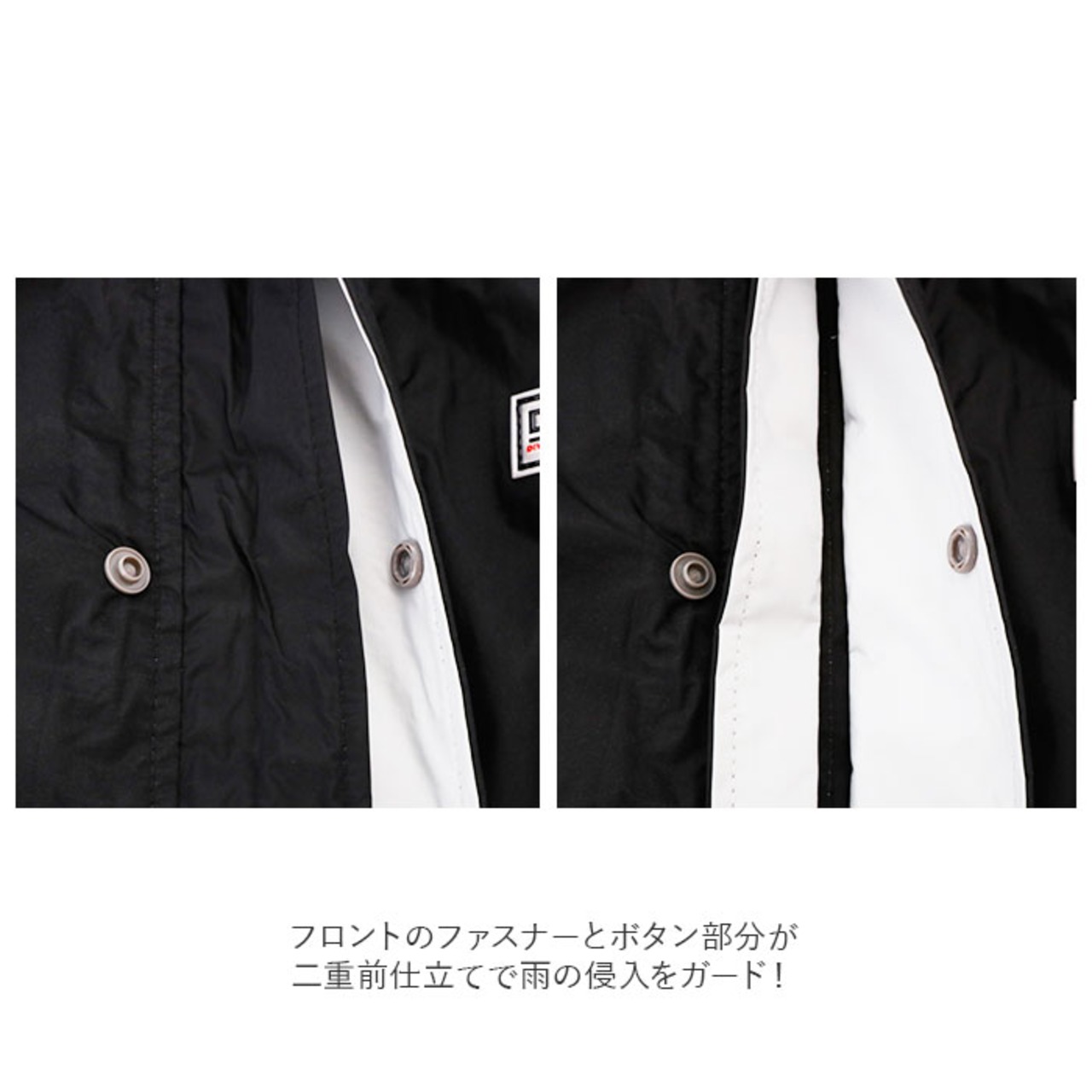 ・フロントのファスナーとボタン部分が二重前仕立てで雨の侵入をガード!