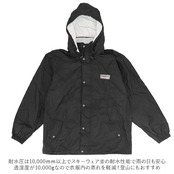 ・生地そのものに備わった防水性能を表す耐水圧は10,000mm以上。スキーウェア並の耐水性能で雨の日も安心。
