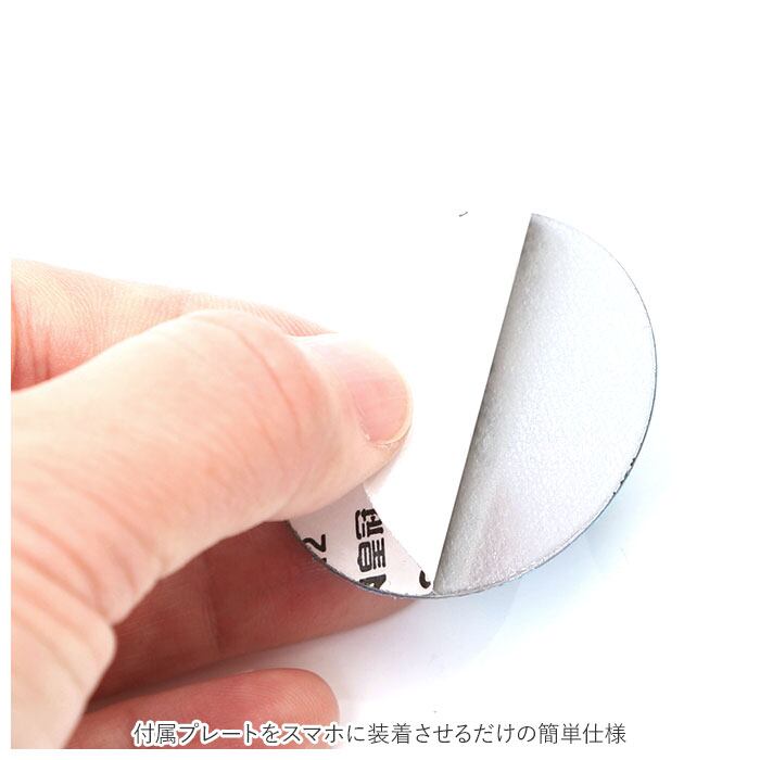 ・付属プレートをスマホに装着させるだけの簡単仕様。