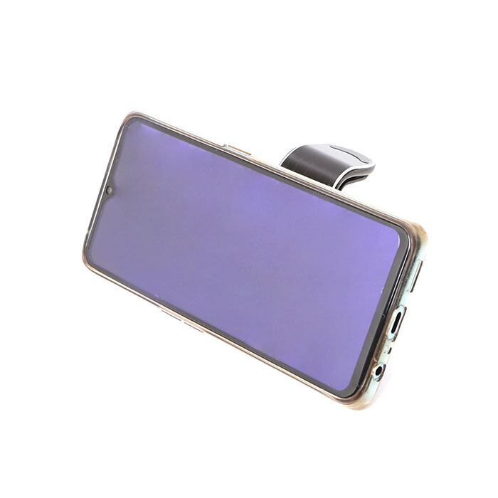 ・エアコンルーバーに差し込むクリップの内側は傷を付けにくくするシリコン素材付き。