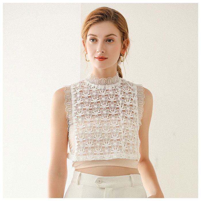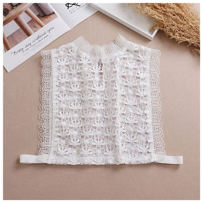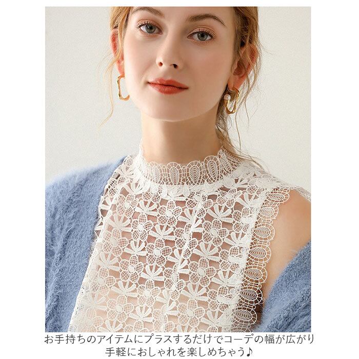 ・レース素材×花柄の刺繍がおしゃれな、スタンドカラーデザインの付け襟♪