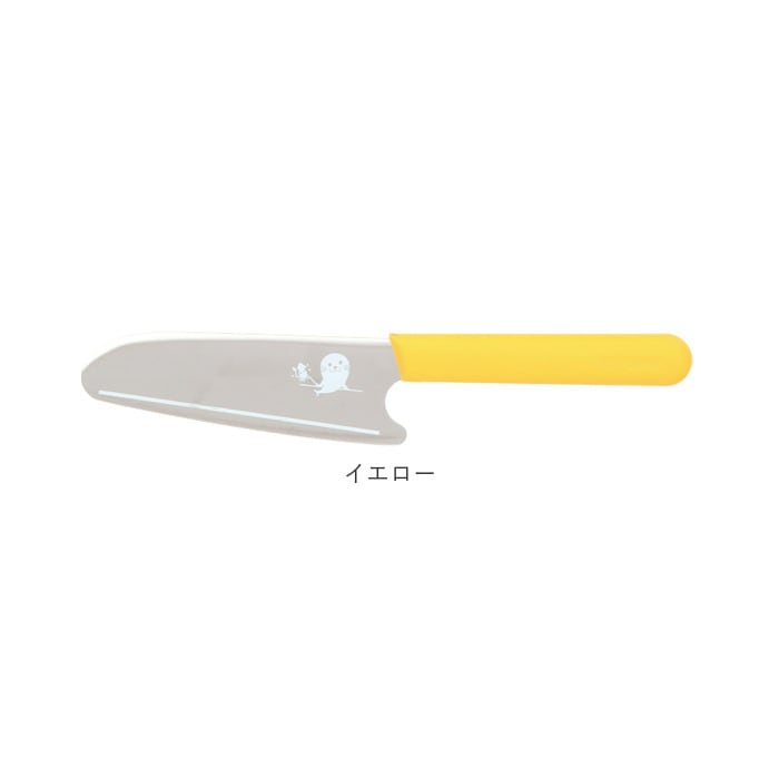 ・刃の表面にデザインされたアザラシ君とイカ君のオリジナルキャラクターに優しく見守られながら、楽しくママのお手伝いができちゃう!お母さん用のセカンド包丁にもオススメ!