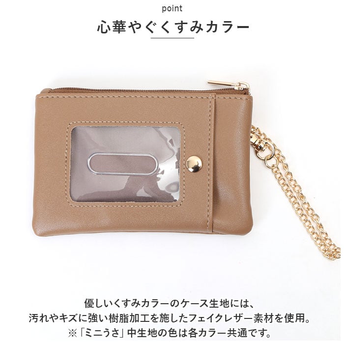 ・背面側は定期券やICカードが収納できるクリアポケット仕様。スナップボタンがカードの抜け落ちを防ぐから、落とし物の多いうっかりさんでも安心♪