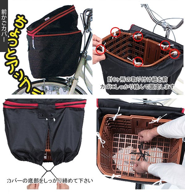 ・前カゴカバーは背面に伸縮ゴム付きなので小さいカゴにもフィットします!